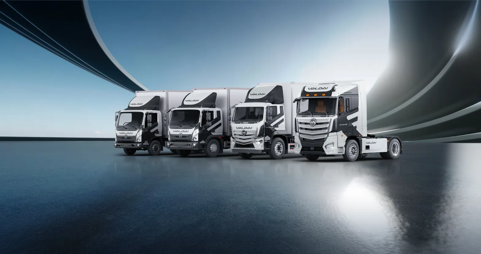 · «Валдай 12» — среднетоннажный грузовик с полной массой 12 тонн, разработанный для городских и межрегиональных перевозок. Автомобиль оборудован экономичным дизельным двигателем и пневматической задней подвеской для повышения плавности хода.